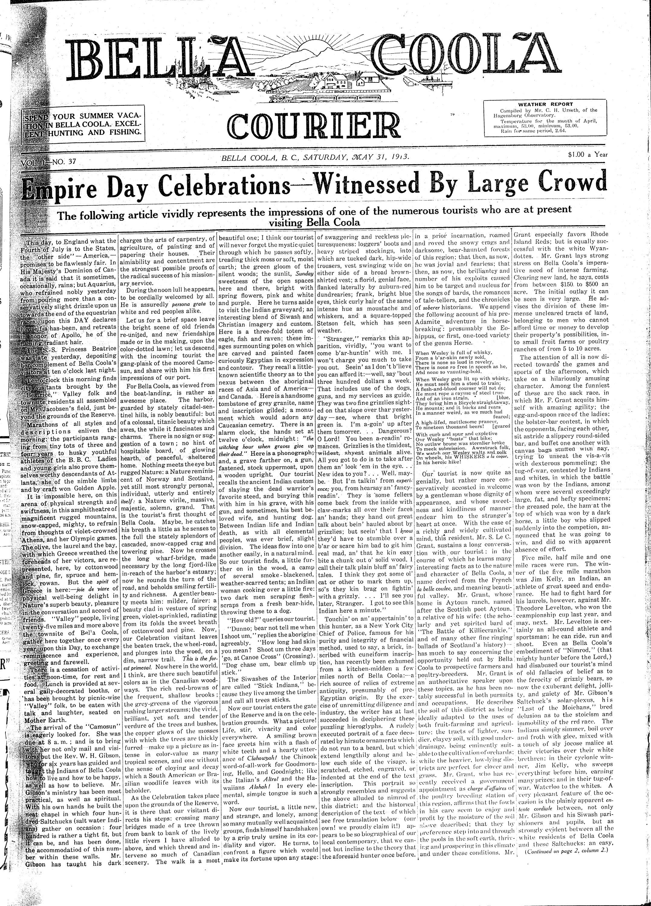 Bella Coola Courier, May 31, 1913