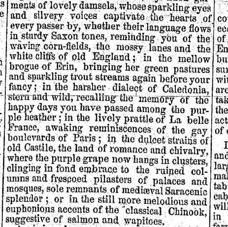 …or in the still more melodious and euphonious accents of the classical Chinook, suggestive of salmon and wapitoes.