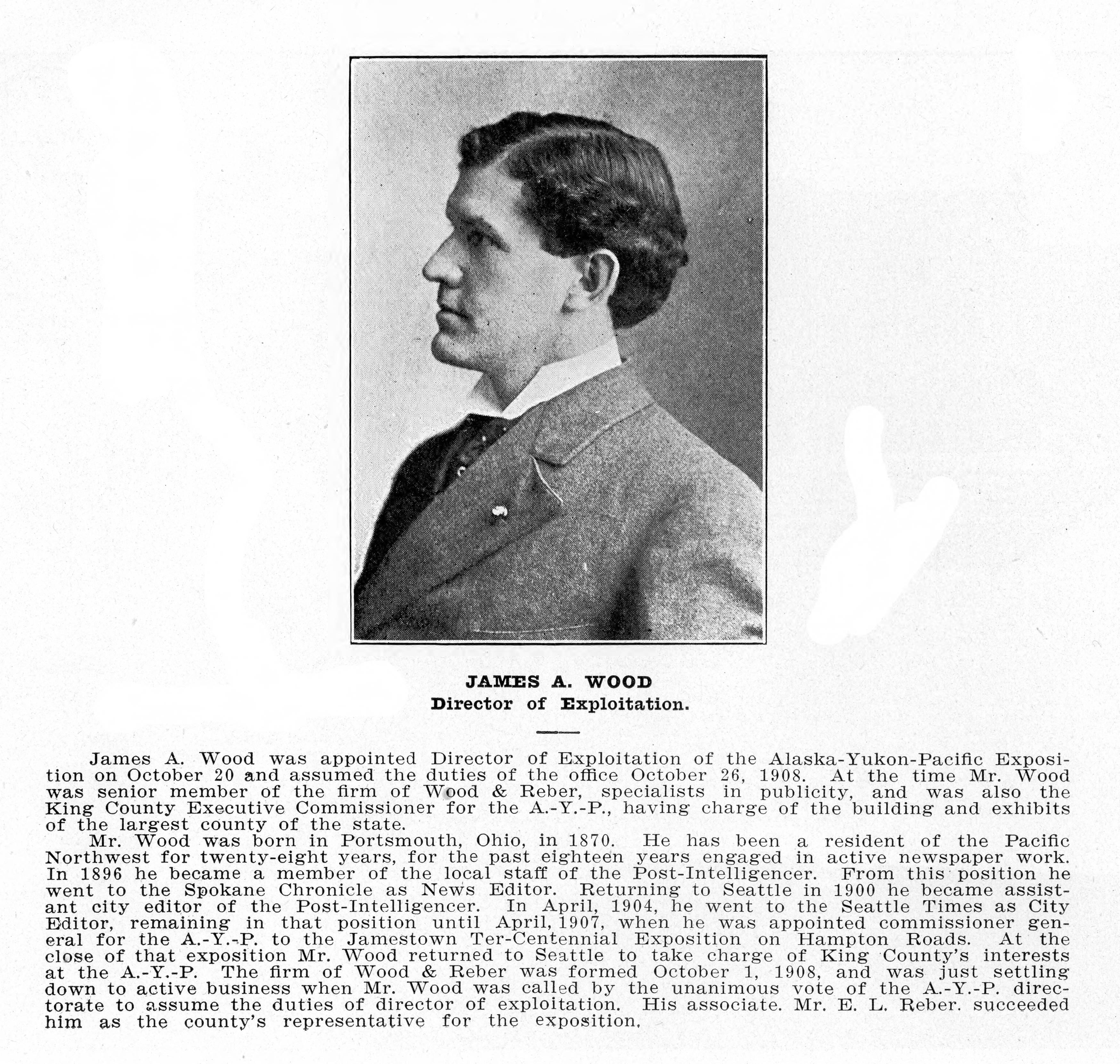 Jim Wood was the city editor of the Seattle Times and — how Western is this — Director of Exploitation for the AYP.