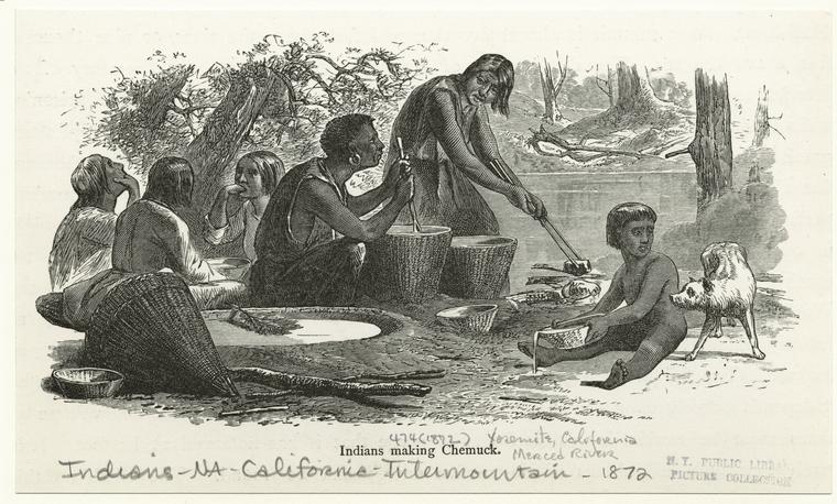 Here are Yosemite Indians making Chemuck, 1872 (they could be Ahwahneechee people, of mixed Northern Paiute-Miwok descent but Miwok in language):
