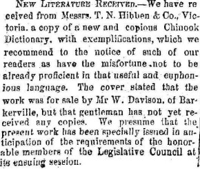 Today we find that by 1850, people already were using Chinook Jargon words in local English without having to explain themselves…