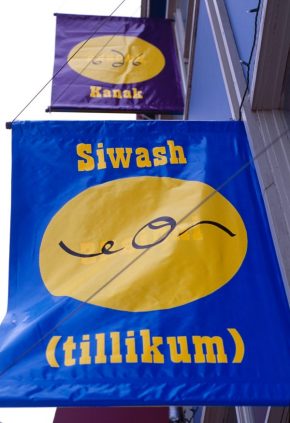 A site-specific Chinuk Wawa public art piece, Kamloops, 1993.