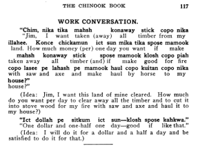 The other day I mused about Chinuk Wawa dictionary writer WS “El Comancho” Phillips’s weird pronunciation-spelling of k’áynuɬ ‘tobacco’ as < chinoos >.