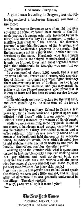 This urbane reporter perceived “German” in Chinuk Wawa near Grand Ronde and Siletz, maybe because of the “ch” sounds!