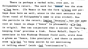 It’s been generally agreed that the Chinook Jargon word q’əláx̣(ən) ‘fence’ comes from Salish, but what if there’s more to the story?