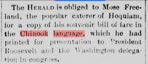 In a previous post, I reported that US President Teddy Roosevelt spoke Chinook.