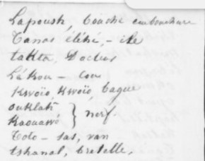 Here’s the tenth pair of page images from Father Honoré-Timothée Lempfrit’s copy off of the presumable Modeste Demers original Chinuk Wawa vocabulary made at Fort Vancouver circa 1838-1839.