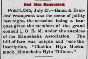 1898, Portland, OR: Red Men banqueted!