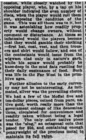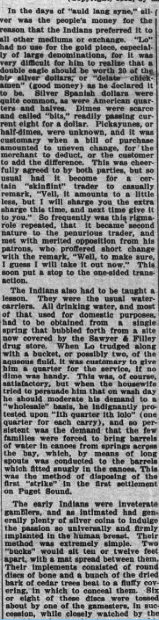 Here’s a neat reminiscence of frontier-era practices involving cash money in a cultural contact situation where just about everyone was speaking Chinook Jargon.