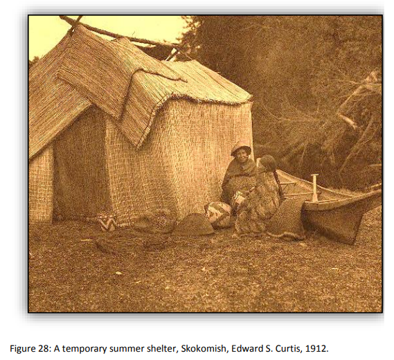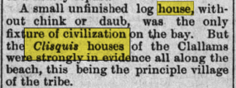 So, we’re hearing someone’s February, 1852 memory of S’Klallam (Coast Salish) temporary shelters that were usual at resource-gathering sites, in this case, what’s now Port Townsend, WA.
