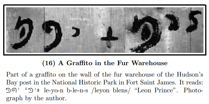 In 1885, within weeks of Dakelh people starting to learn this writing, the earliest preserved text in it showed up on the wall of a jail in Richfield, BC, near Barkerville. The parallel that I can add is that Indigenous people also wrote graffiti with Chinuk Pipa writing.