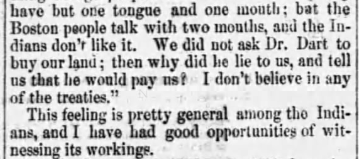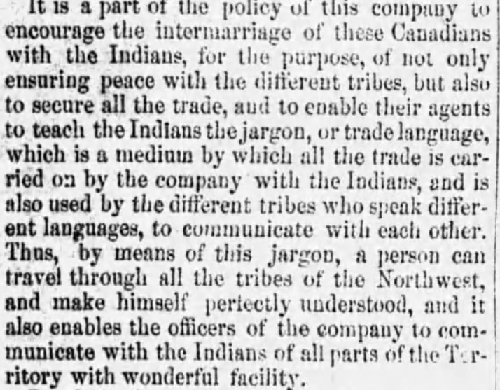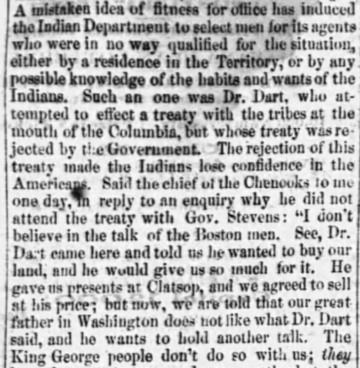 JG Swan says lots more in this article, and it’s just one of several he got published in farflung newspapers. Here’s his expert, and damning, view of US treaty-making and breaking with the Chinook Indian Nation, with a valuable quotation that needs to be back-translated into Chinuk Wawa: