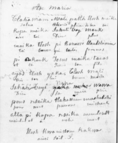 When I say that this Chinuk Wawa is fluent, I’m saying that it’s totally characteristic stuff from what I’ve now come to call the Central Dialect. That’s the oldest variety of the language, the early-creolized Jargon associated with Fort Astoria and Fort Vancouver. The document we’re looking at here was created before the Northern or Southern dialects (associated with British Columbia and with Oregon’s Grand Ronde Reservation, respectively) even existed.