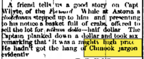 I think we may have just antedated the classic Pacific NW “sitkum dollar” joke by 24 years!