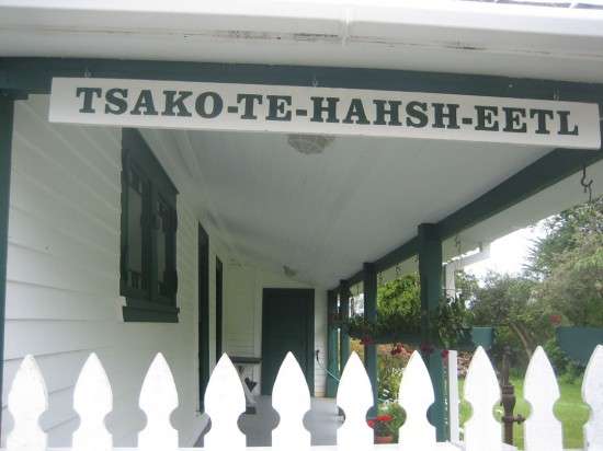 I’ve never thought of tsako-te-hash-eetl as a house name, although I’ve heard visitors refer to the house that way. As I understand it, they are the words Old Klickeas used to describe this northeastern shore of the peninsula to my great-grandfather, R.H. Espy, in the fall of 1853. It’s a place name, not a house name.