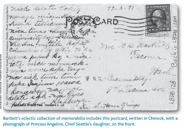 While you’re busy finding this piece to share with the whole Chinook Jargon world, let me leave you with this January 20, 1921 CJ postcard (from the Steilacoom [WA] Historical Museum Association), also featured on page 7 of Covert’s article: