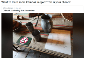 Chako pi wawa kanamokwst nesaika! ‘Come talk with us!’ And be part of keeping Chinuk Wawa back alive.
