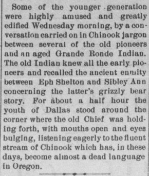 Not too far into the post-frontier period, Chinuk Wawa was already a curiosity just outside Grand Ronde…